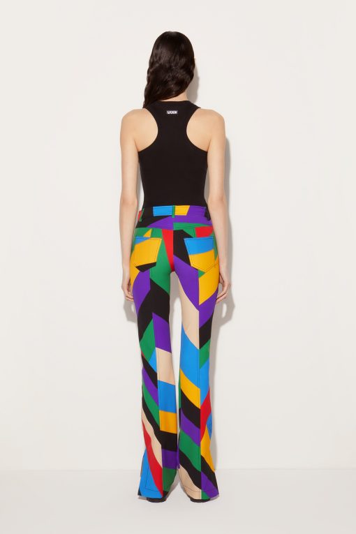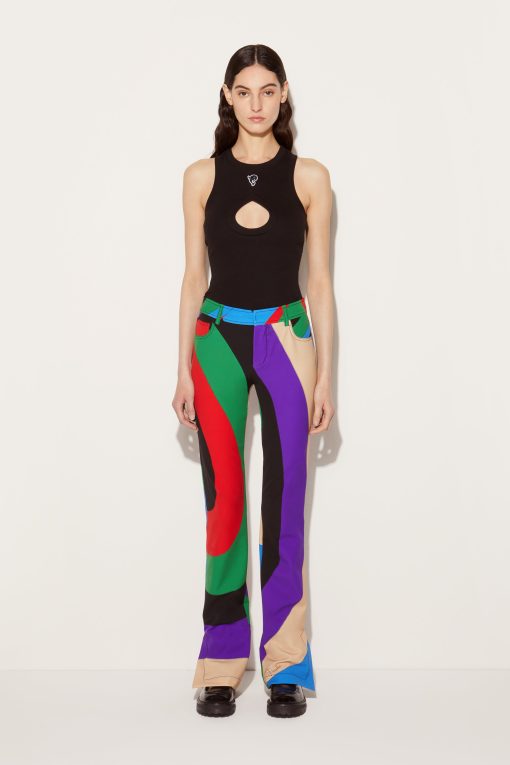 Showcasing Pucci’s elevated take on tailoring, these trousers are cut from techno-couture fabric to a straight-leg silhouette with subtly flared split cuffs. The Iride print decorates them in rich jewel tones.