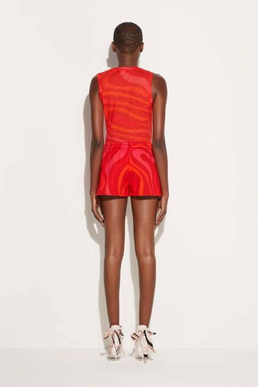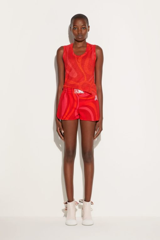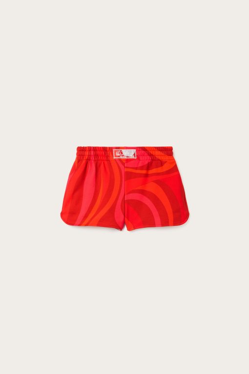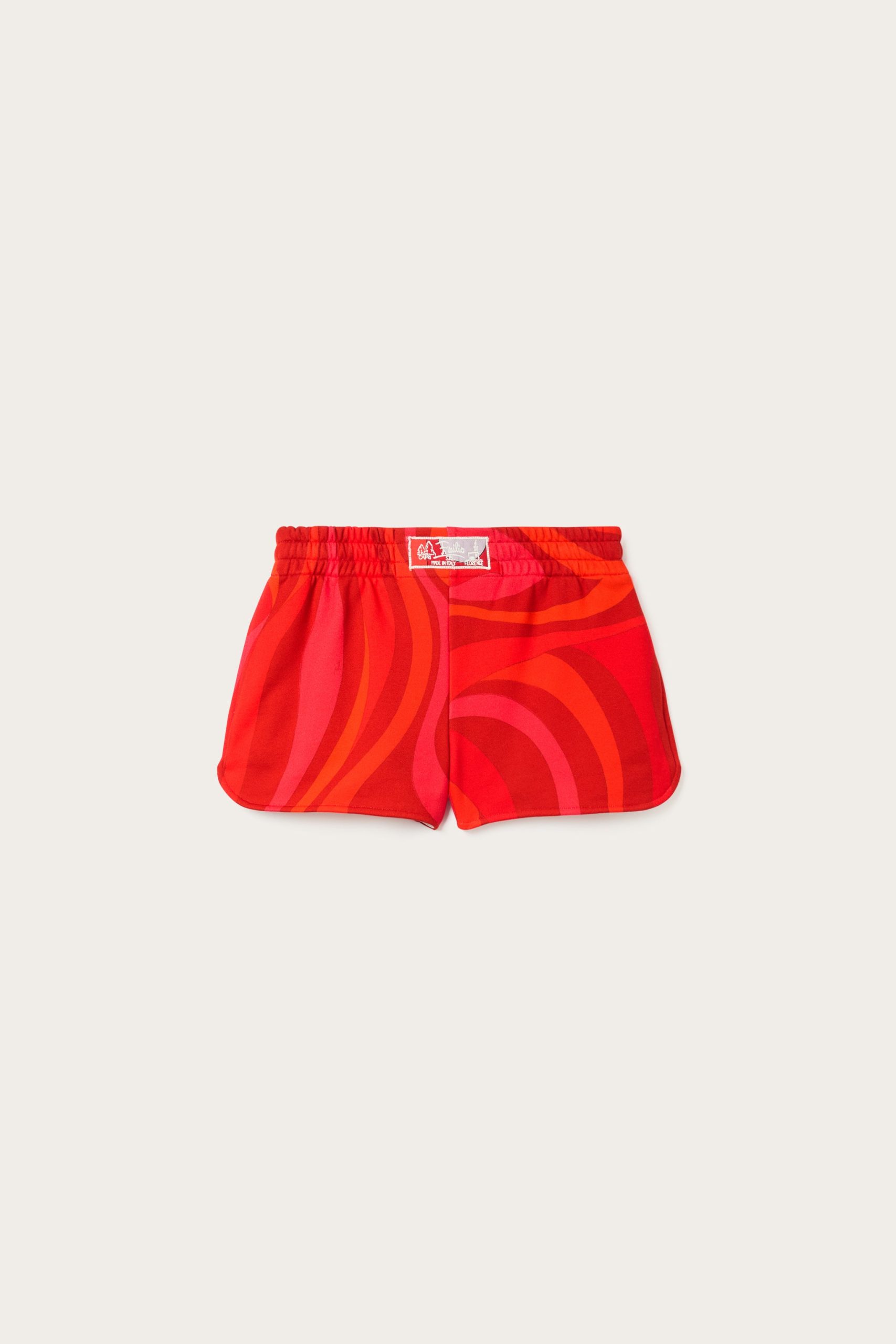 Red-colored Marmo print jogger shorts feature a “poofy” fit that adds volume and practicality to one of the brand’s most iconic graphics. Elasticized waist and hems provide the ideal comfort and fit for a cool, versatile look.Pair with the matching T-shirt or sweatshirt for a complete look that knows how to mix cheerful Pucci elegance with a sporty spirit.
