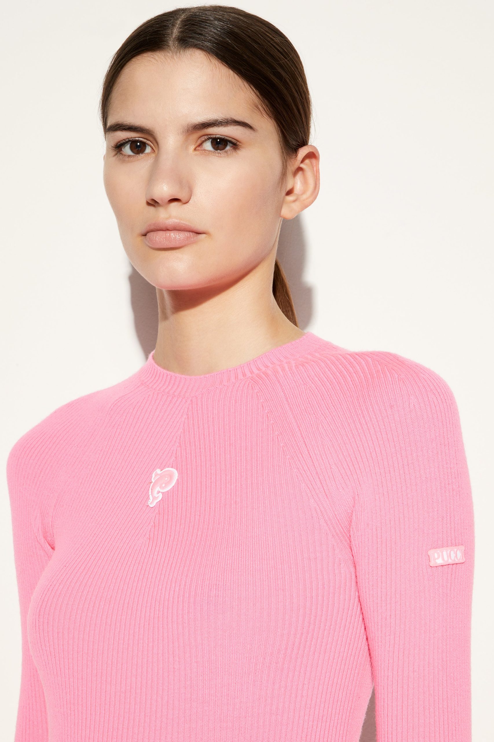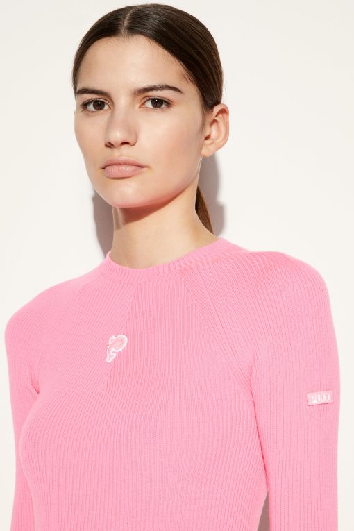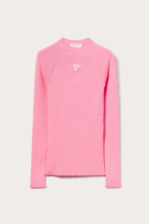 The hallmark intertwined fish motif puts a signature twist on this ribbed-knit sweater, which is crafted to a slim silhouette and finished with an embroidered logo patch at the sleeve.