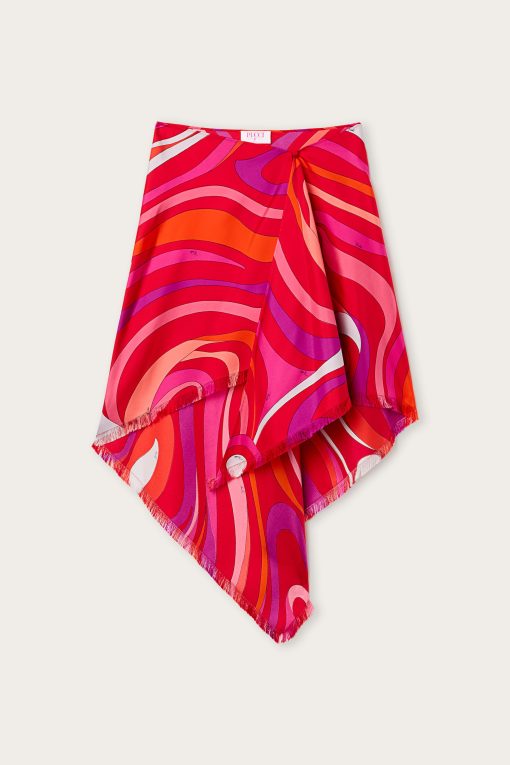 The asymmetrical hemline of this skirt adds a dynamic touch, creating a curvy effect with every step. The iconic detail? The Marmo print, which along with the vibrancy of coral and fuchsia, recalls Pucci’s unmistakable personality.Made of a flowing viscose fabric, this mini skirt has a soft texture and a perfect fit to accompany you from day to evening.