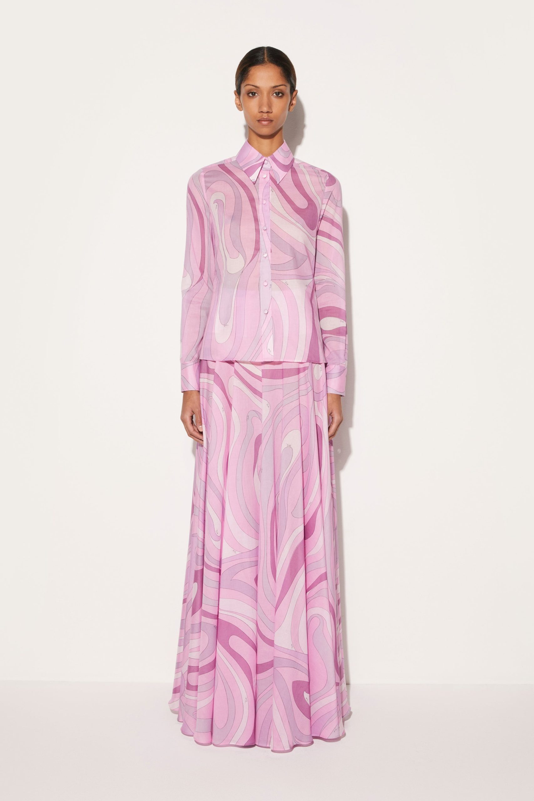 This lightweight cotton muslin shirt presents Pucci’s spirited take on a classic wardrobe staple. It’s transformed by the Marmo print’s marble-inspired waves.