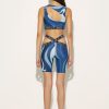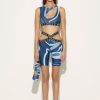 Pucci’s playful take on athleisure, this crop top is decorated with swirling Marmo-print waves and a logo-jacquard underband. It’s made from eco-Lycra and finished with cut-outs at the front and back.