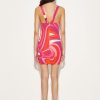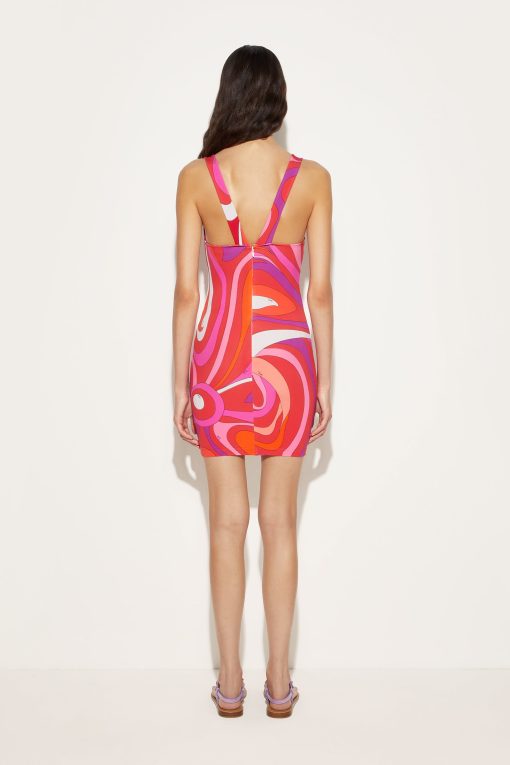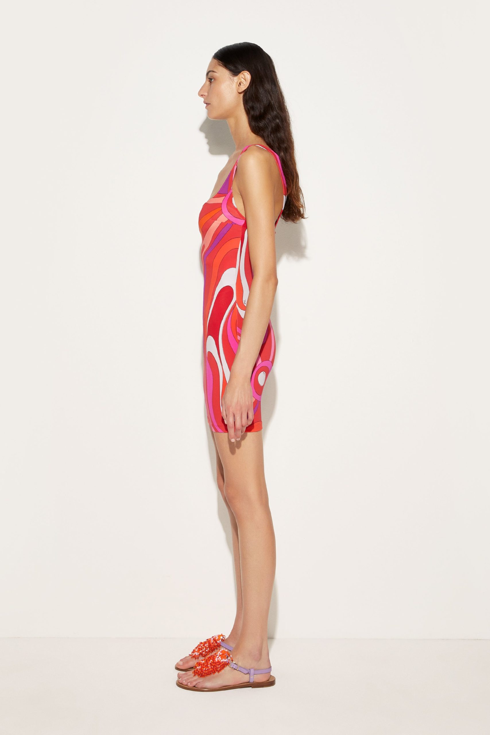 Like an elegant veil painted over the body, this mini dress with square neckline and thin straps enhances elegance with clean lines and a straight silhouette that falls gently to mid-thigh. The double-layered knit, enhanced with soft trims, offers impeccable comfort and a refined fit. With a poetic approach, Camille Miceli reinterprets the iconic Marmo print by enhancing its authenticity and adding details with artisanal charm, capable of blending history and modernity.