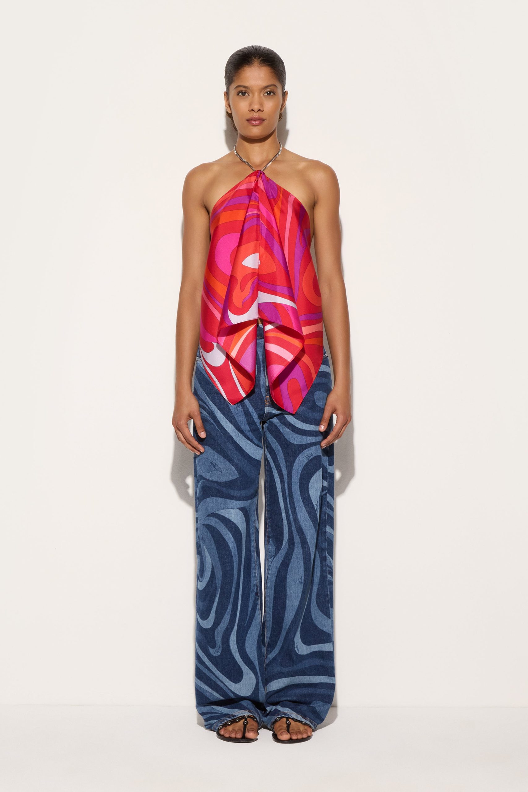 Pucci Women’s Marmo Print Silk Top | Coral & Fuchsia
