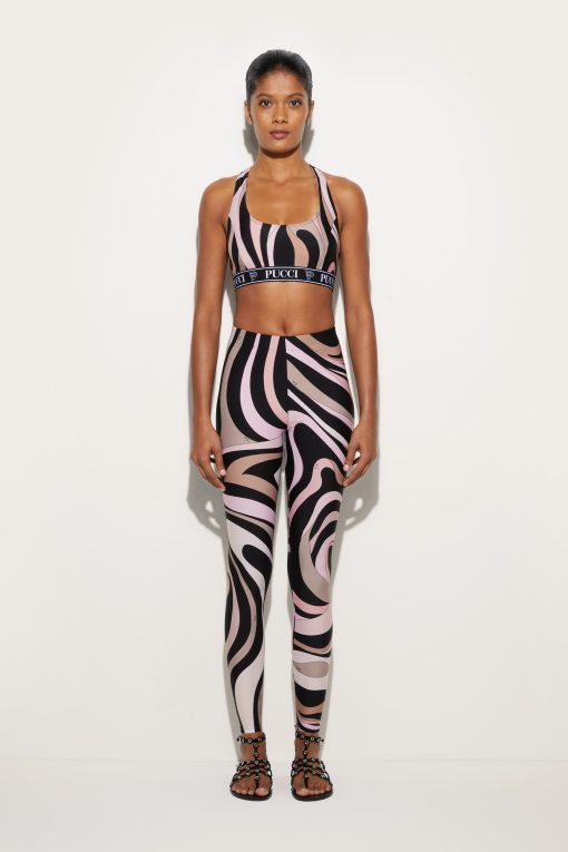 The perfect support for moving in style. This sports top is designed to give you the right balance of comfort and support without sacrificing elegance. The elastic band wraps around the bust ensuring a secure fit, while the thick straps give stability without compressing.Made of stretchy lycra with anti-UV treatment, it is the ideal ally for outdoor workouts or more dynamic days. All embellished with the Marmo print, a style icon that adds personality even to sporty looks. Pair it with the coordinating leggings for a total Pucci gym look.