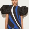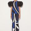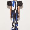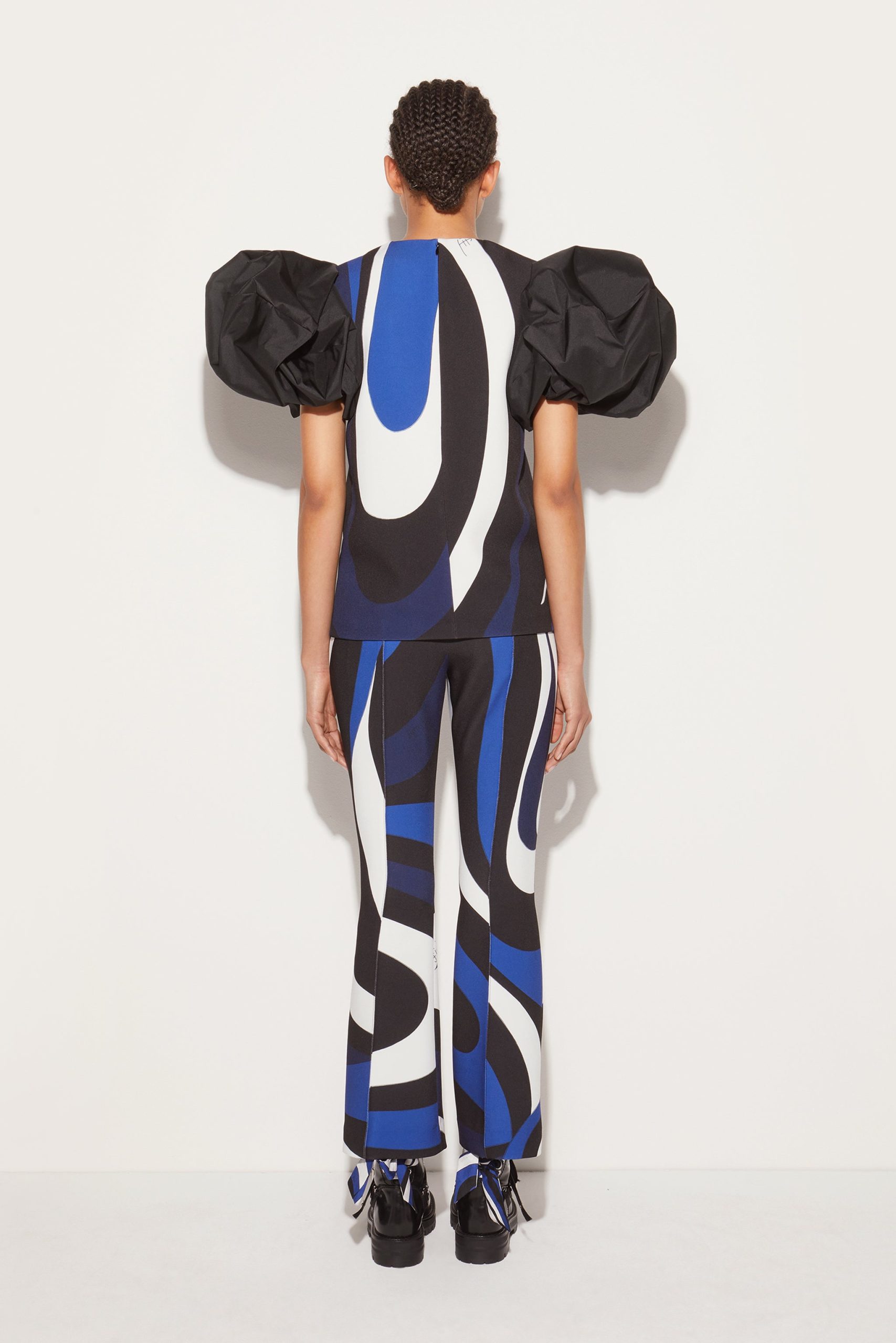 This cady top is characteristic of Pucci’s bold spirit. It’s cut with dramatic puff sleeves and enveloped with the marbled lines of the Marmo print.