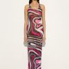 A long dress that blends simplicity and elegance, a sensual contemporary mermaid costume. With its round neckline, straight cut and sleevelessness, this garment fits naturally to the silhouette, enveloping the body like a second skin. Made of a lightweight stretch tulle that combines comfort and style, it is further enhanced by the iconic Marmo print, which adds movement and vibrancy to the design, making this dress ideal for special occasions or elegant evenings.