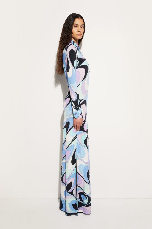 This dress showcases Pucci’s ability to elevate classic designs through impactful patterns. It’s crafted to a shirt-style silhouette and is decorated with the vibrant Onde print.