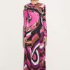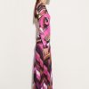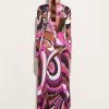 Adorned with two of Pucci’s most energetic prints, the Orchidee and the Iride, this dress is awash with vibrant pattern play. It’s cut from a sleek jersey satin that fits close to the body and falls to a long skirt with fluid movement.