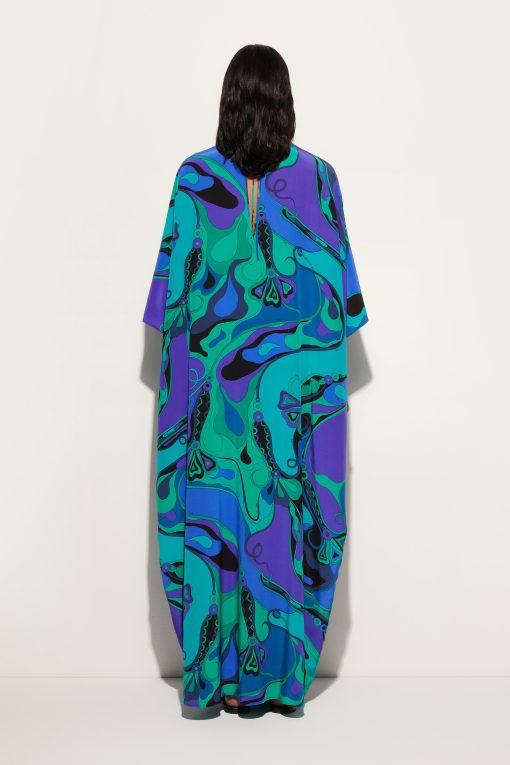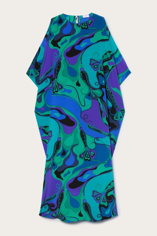 Lightweight, flowing and incredibly sophisticated: this kaftan is the perfect garment for those who love relaxed elegance without sacrificing style. Its loose fit makes it airy and comfortable, perfect for those days when you want to feel free in your movements but flawless in your look.The emerald Orchidee pattern enhances the design, giving a perfect balance between tradition and modernity.