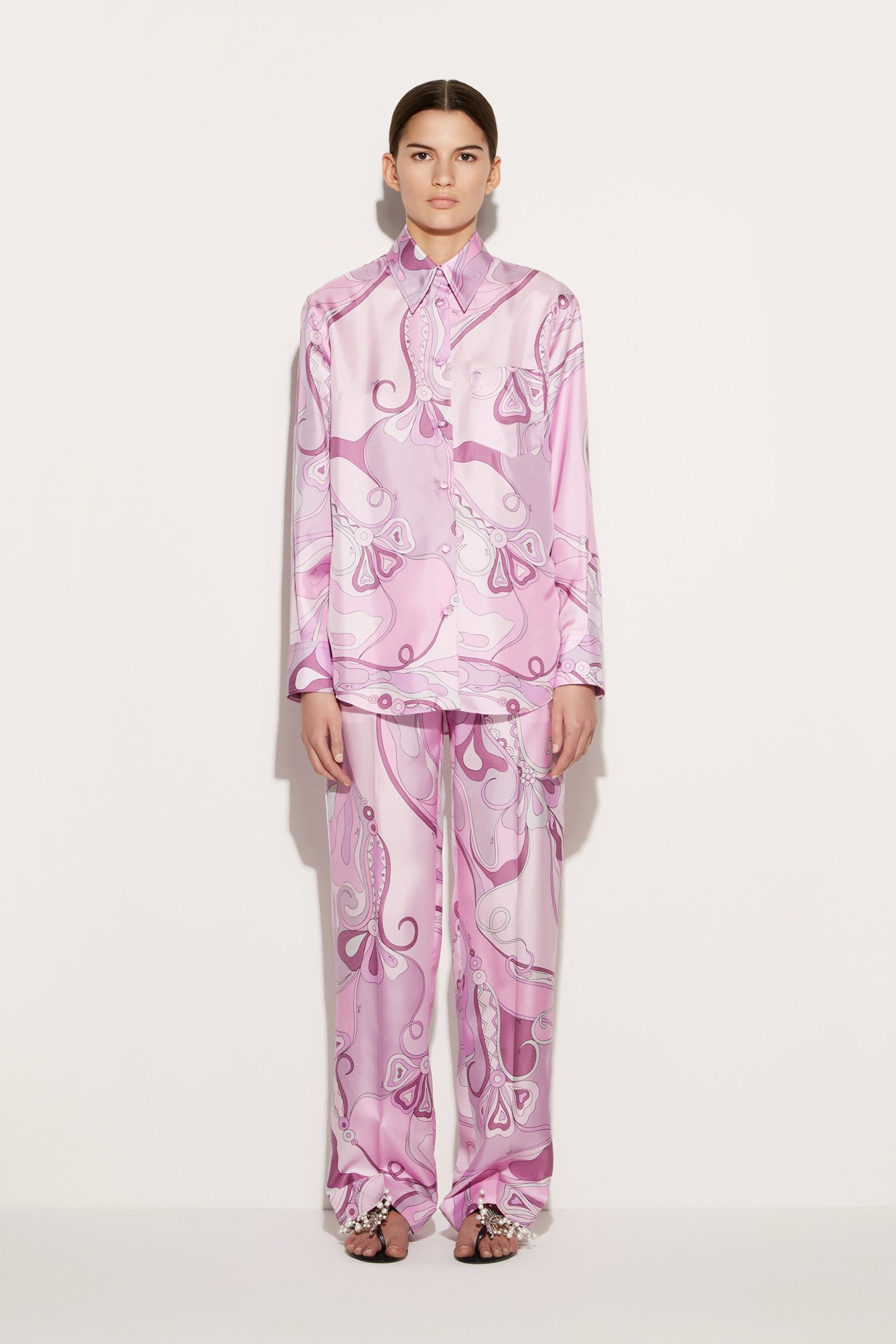 This shirt is awash with the floral-inspired shapes of the Orchidee print in a pastel pink palette. It’s cut from silk twill to a relaxed silhouette and features classic design hallmarks: note the point collar and patch pocket at the chest.
