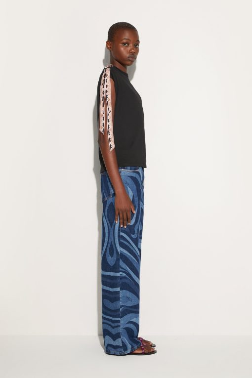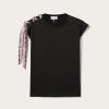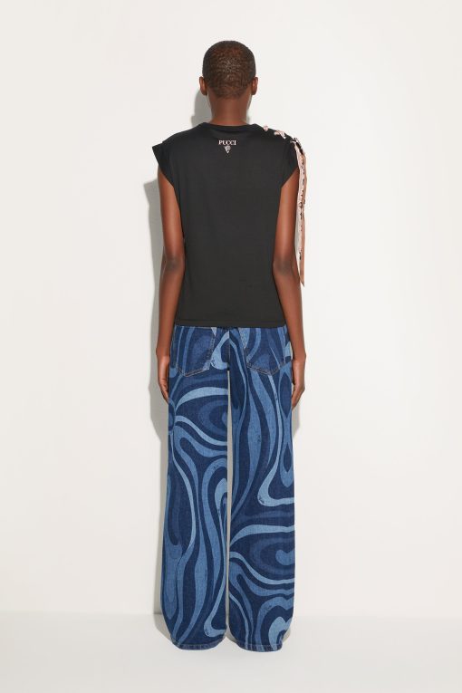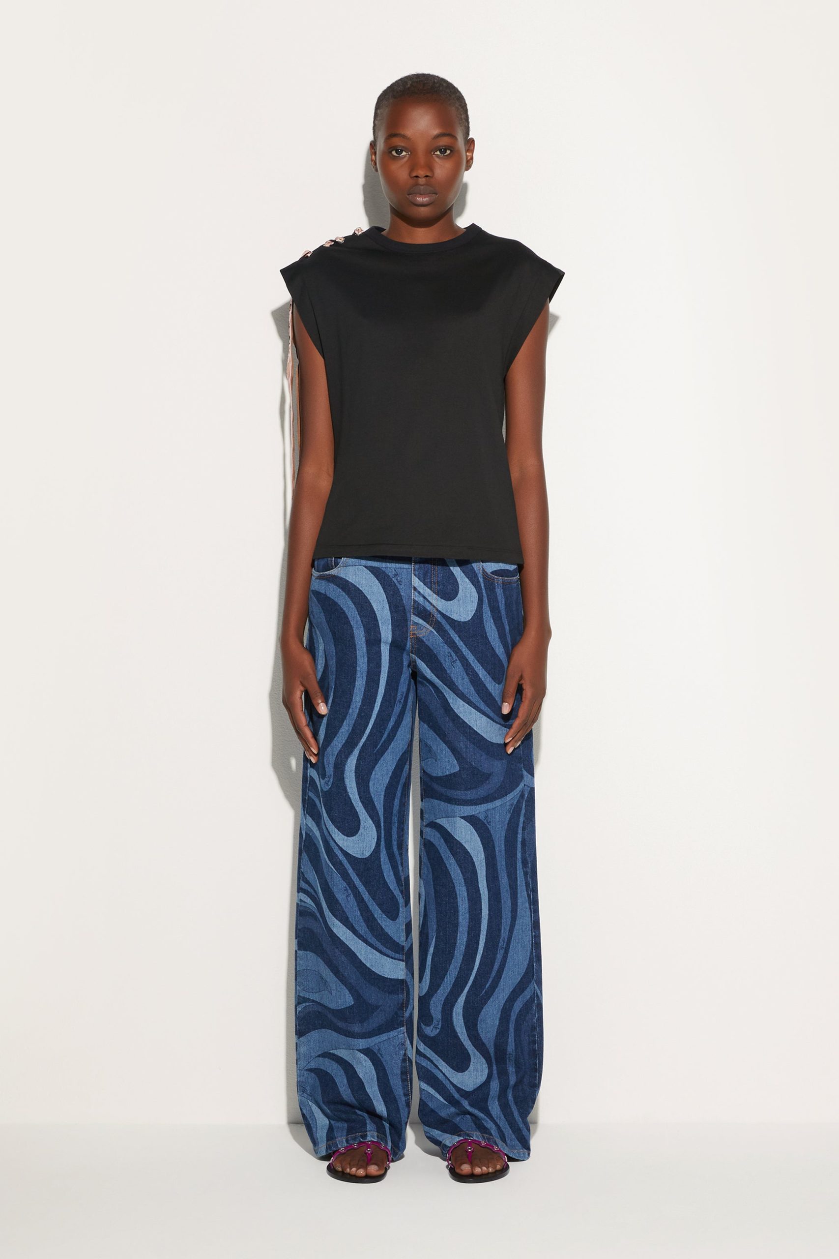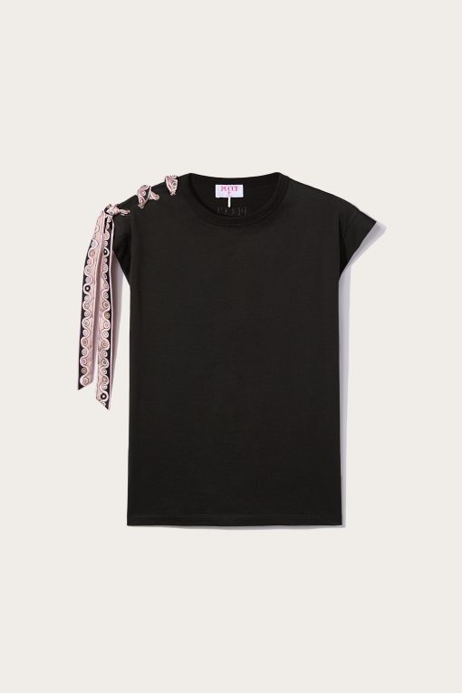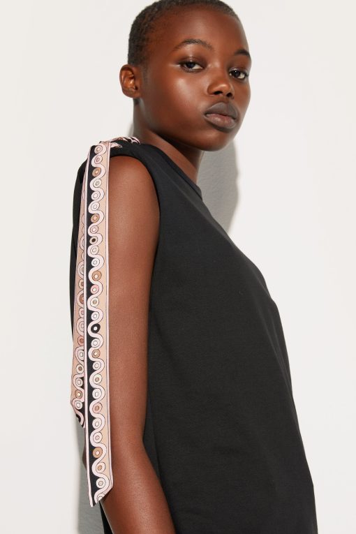 Decidedly minimal, yet full of character, perfect for those who love a modern, versatile style. This short-sleeved top, with its high neck and straight cut, stops elegantly at the waist, offering a clean, sophisticated silhouette. The drawstring detail on one of the sleeves adds a unique and distinctive touch, making the design simple yet memorablE. An essential item for any wardrobe, capable of fitting any occasion with elegance.