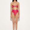 A perfect beach wardrobe ally, this strapless bikini top captivates with its sleek and versatile design. The knotted effect in the center enhances the neckline with a feminine touch, while the stretch Lycra fabric with UV treatment ensures you comfort and protection under the sun. The Marmo print in coral and fuchsia adds a hint of character, ideal for those who like to stand out at all times. Pair it with the coordinating high-waisted bikini bottom for a flawless look or mix and match with other pieces for a unique, customized beach outfit.