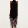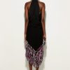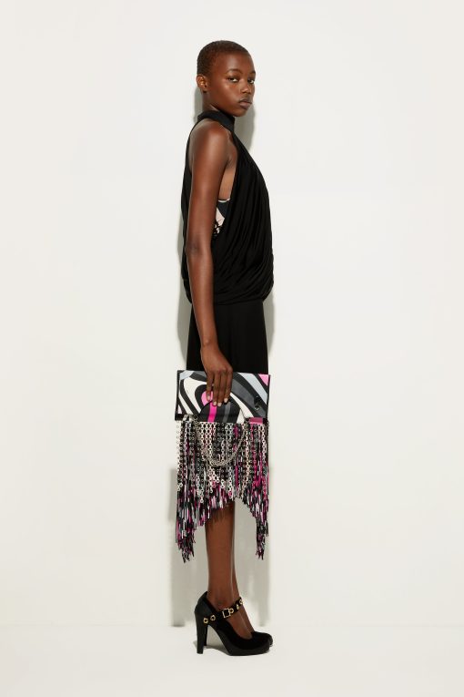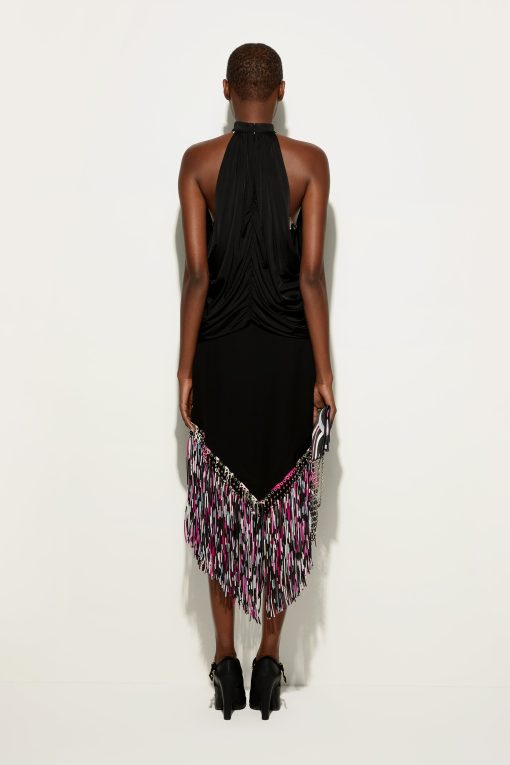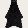 Essential lines and fluid draping meet in this sensual top, a garment that plays with the movement and softness of the fabric. The high neck adds a touch of sophistication, while the wide draped side openings lend lightness and dynamism to the silhouette. Made of lightweight viscose knit, it hugs the figure with an ultra-soft-to-the-touch finish, offering a comfortable and sophisticated fit. The black color enhances its versatility, making it a perfect garment for any occasion.